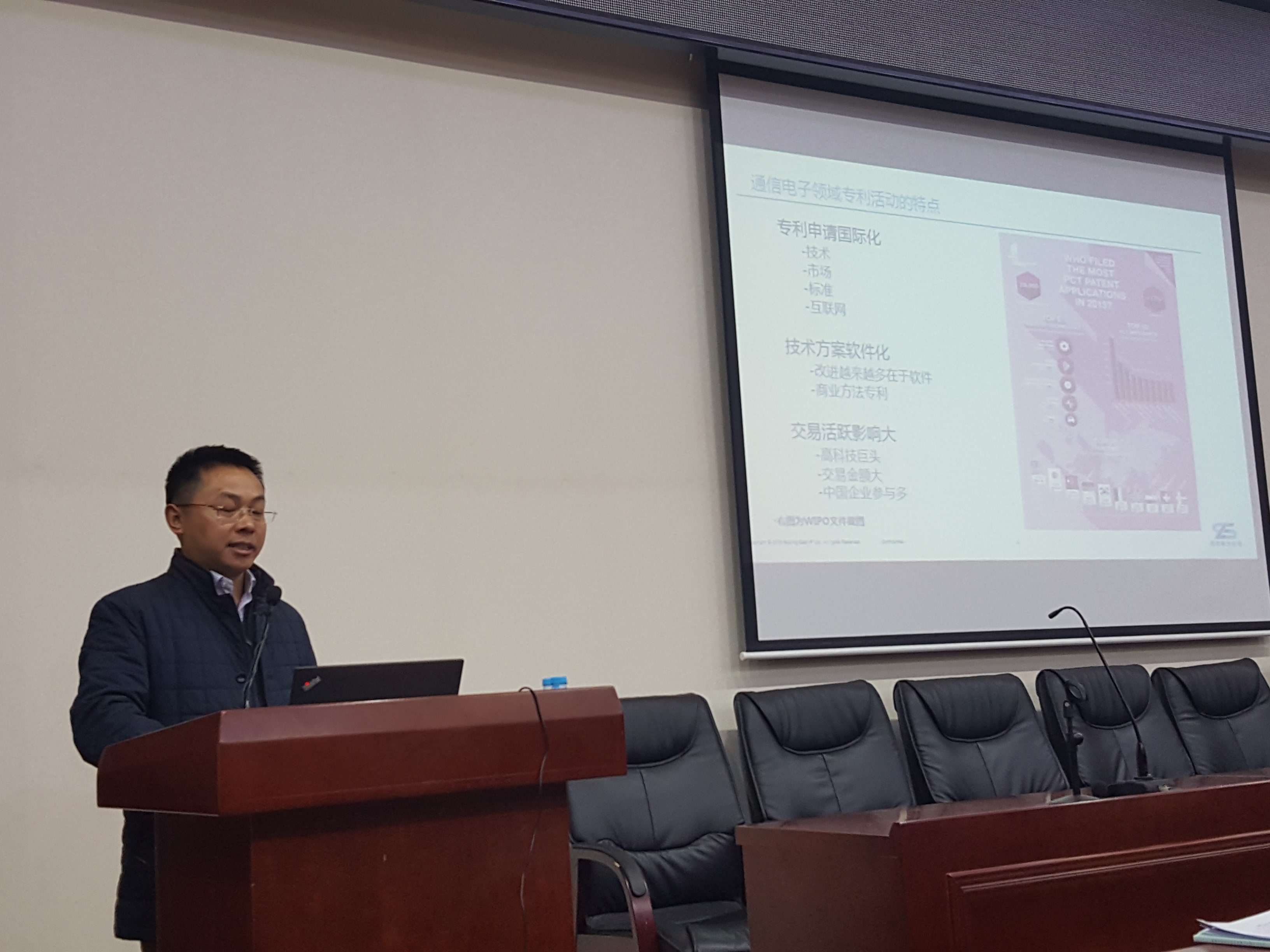 12月16日下午,科技开发部在信息学院理科2号楼2129E阶梯教室举办了题为“通信电子领域的专利保护策略”的第九期专利培训讲座。