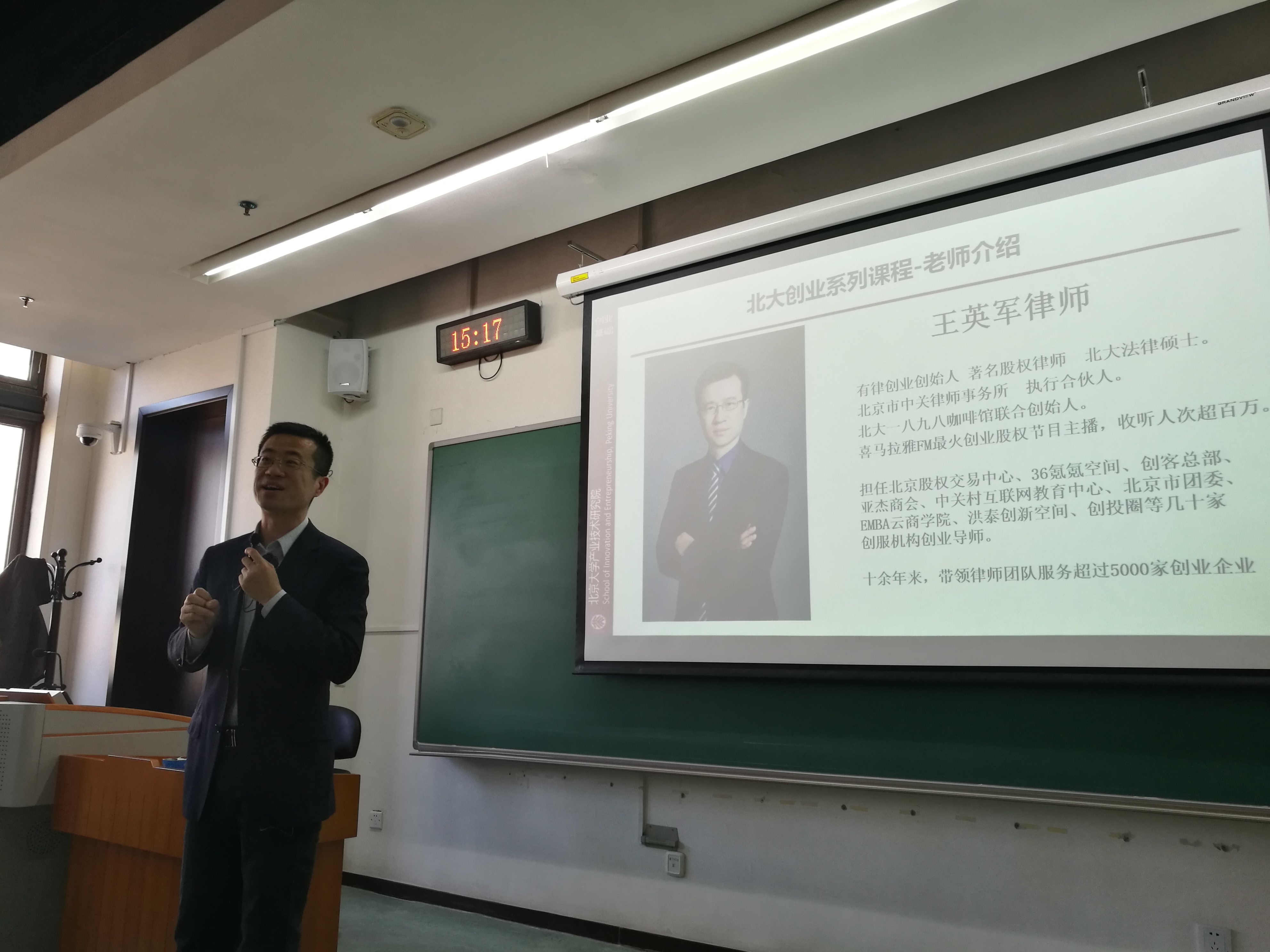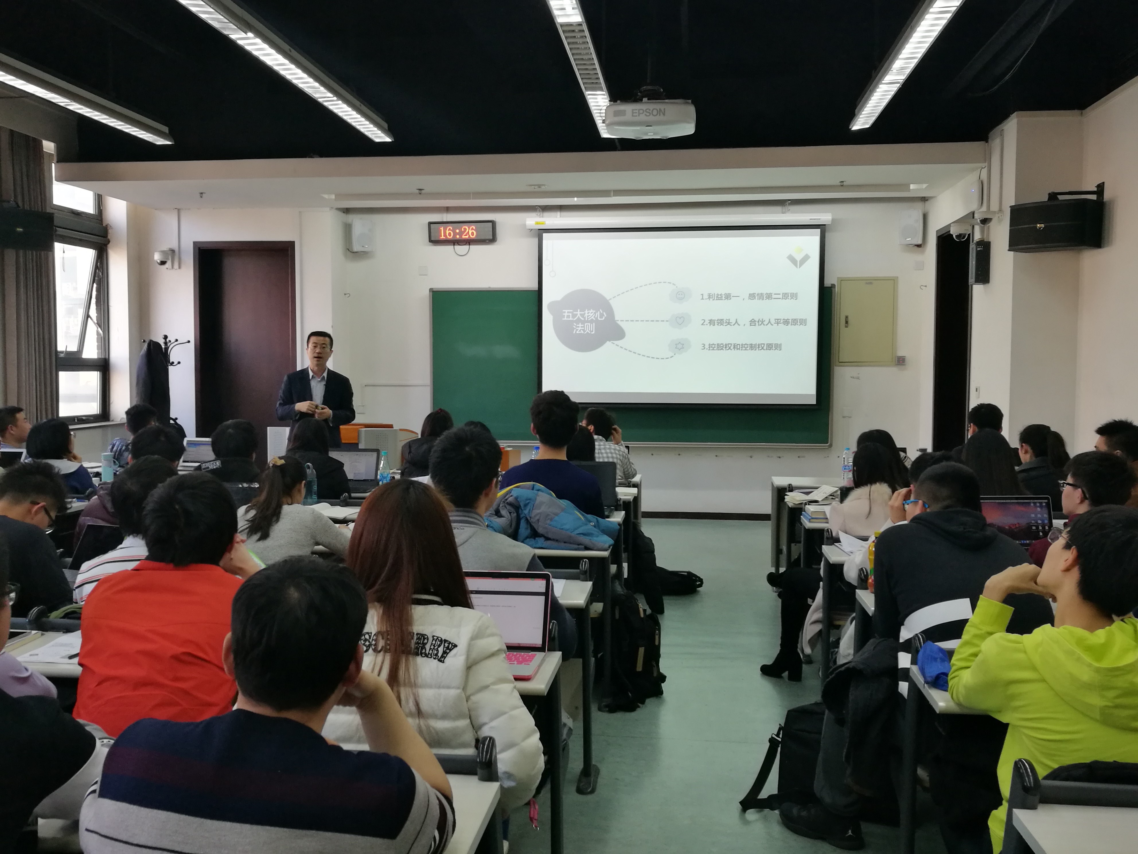 2017年3月8日下午,《创业基础》课进行第三讲 “初创企业公司结构及股权管理”,由有律创业创始人、著名股权律师王英军律师带来精彩的演讲。