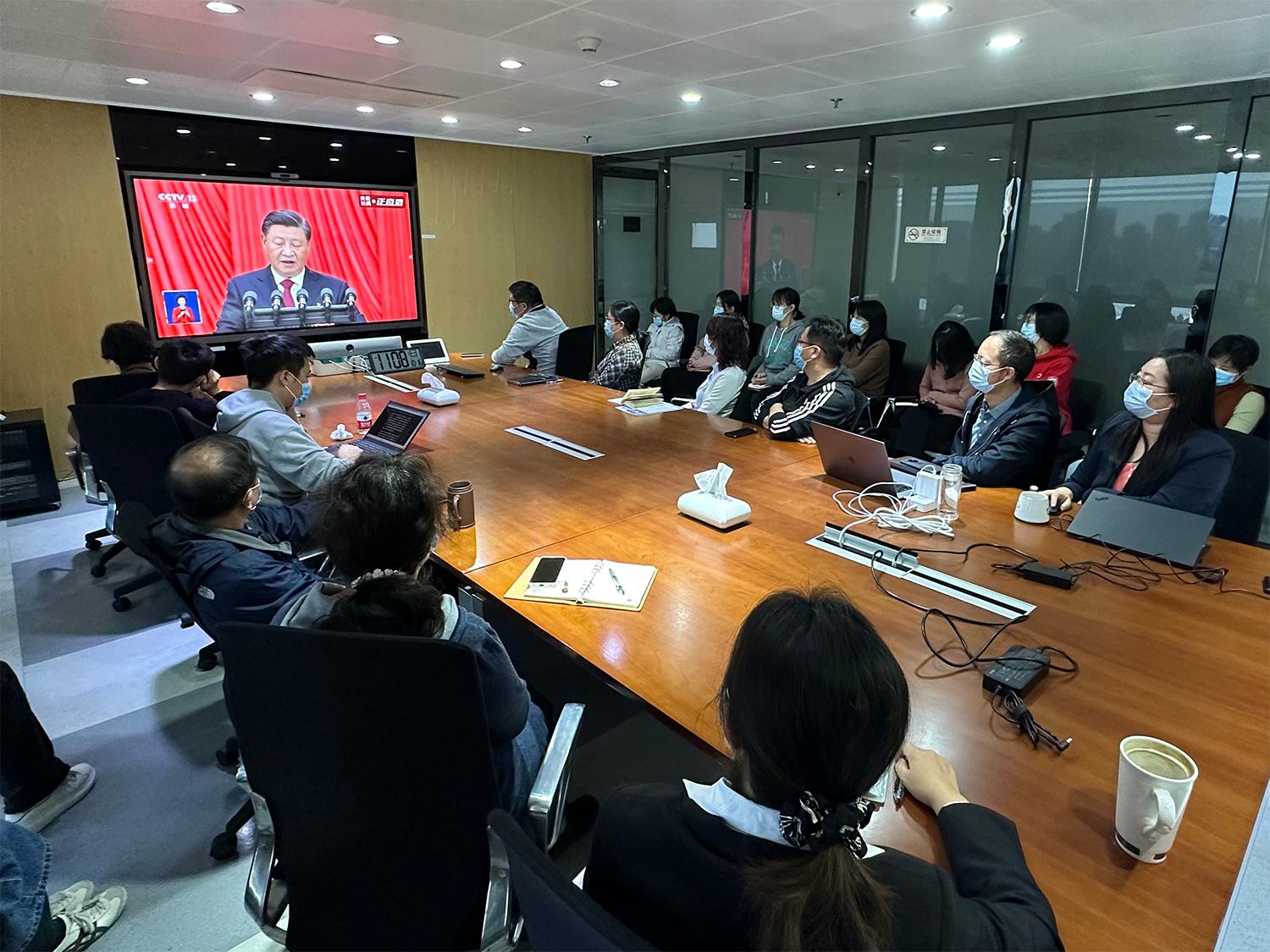2022年10月16日上午10时,中国共产党第二十次全国代表大会隆重开幕,科技开发部党支部组织部门全体同志集体现场观看开幕会直播,学习领会大会重要精神。