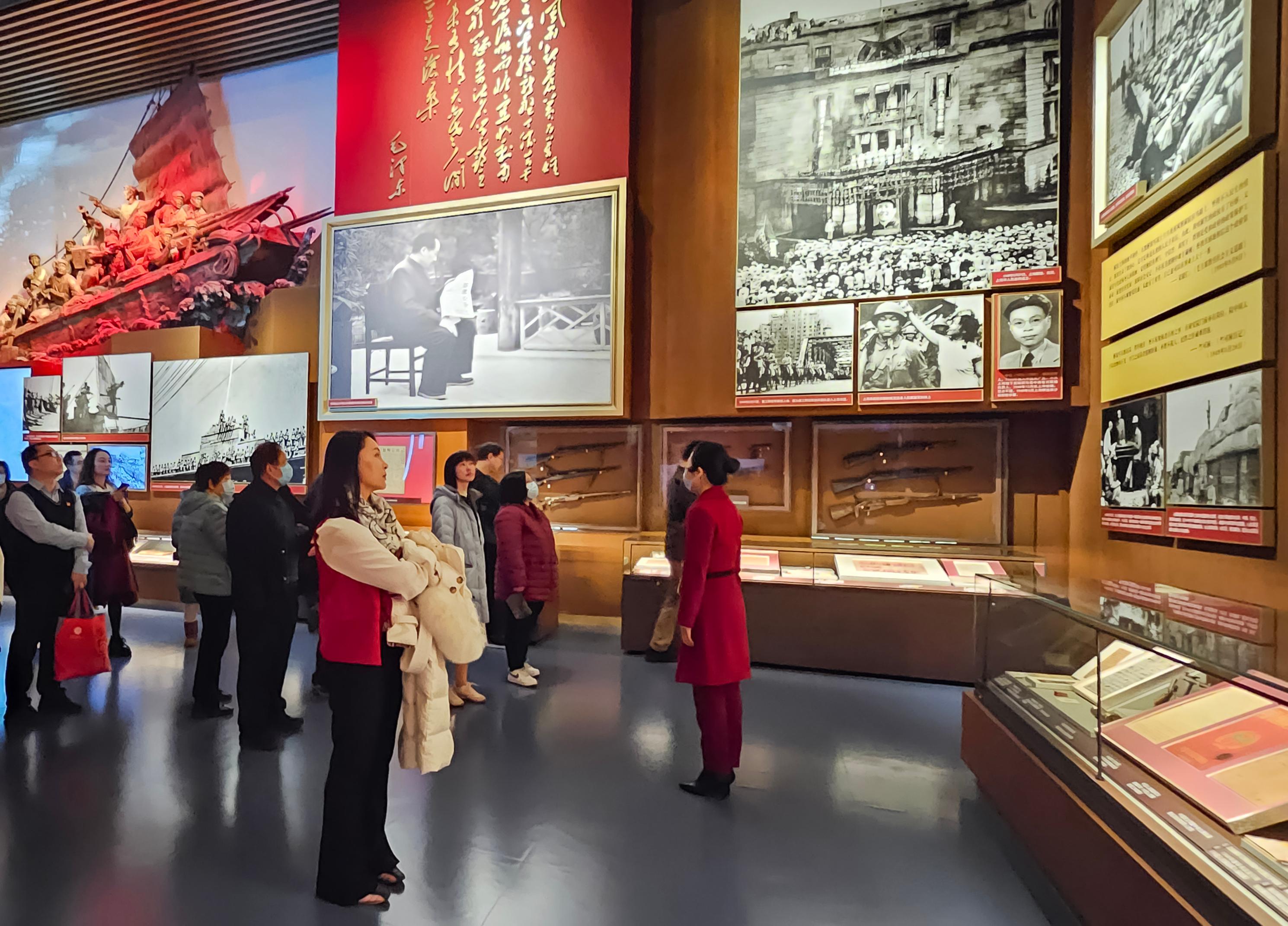 大家在讲解员的带领下,参观了展览馆内丰富的历史资料和珍贵文物。展览馆通过多媒体和实物展示,生动地再现了中国共产党从成立到领导中国人民取得革命胜利,再到推动社会主义现代化建设取得伟大成就的光辉历程。参观者们在每一个展区都驻足深思,深刻感受到了党的伟大和历史的厚重。