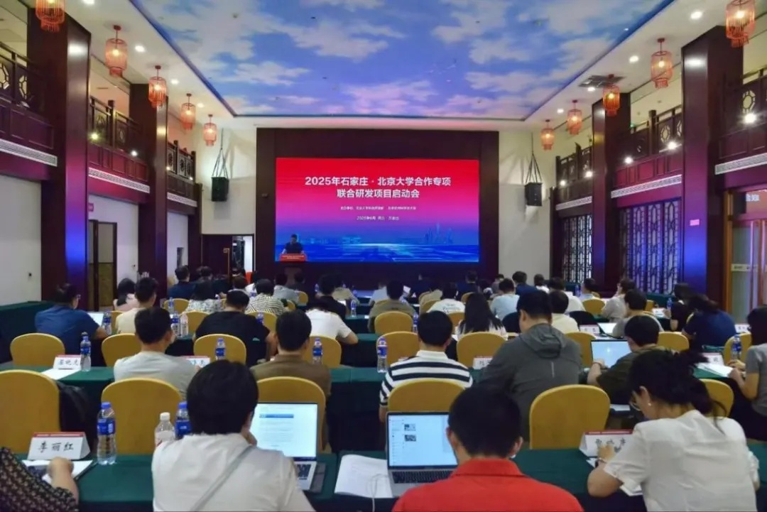 6 月 24 日,由北京大学科技开发部与石家庄市科学技术局共同主办的“2025年石家庄·北京大学合作专项联合研发项目启动会暨校企对接活动”在石家庄市举行。此次活动旨在落实《石家庄市人民政府 北京大学全面合作框架协议》,推动学校与石家庄市重点企业针对行业共性问题和企业“卡脖子”难题开展联合攻关与成果转化,加强产学研合作与协同创新。石家庄市科学技术局党组书记、局长常志卷,北京大学科技开发部部长姚卫浩参加会议并致辞。合作专项联合研发项目负责人、企业代表等近80人参加活动。会议由石家庄市科学技术局一级调研员贾良主持。