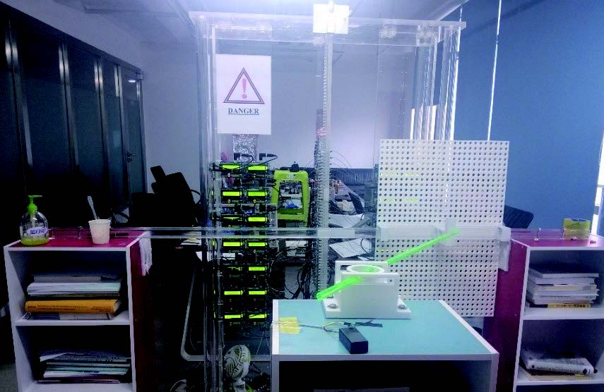 本课题组同内窥镜团队合作,发展了基于磁电耦合原理的磁电传感器阵列和磁成像系统,研制了国内首台磁电磁成像样机。该样机核心组成部分由56路磁电传感器、驱动电路、信号采集与处理、磁成像显示等构成。该磁成像系统不仅能够检测磁性金属物的存在,而且还能准确判断其位置、姿态,定位偏差纵向在1.2cm以内,横向偏差在0.5cm以内。另外,通过对金属棒扫描和采集信号的微分处理,还可以判断金属棒的长、径比值。该项研究提出的磁成像系统在安检、医学上人体内磁性药囊实时监测方面具有较大应用价值。