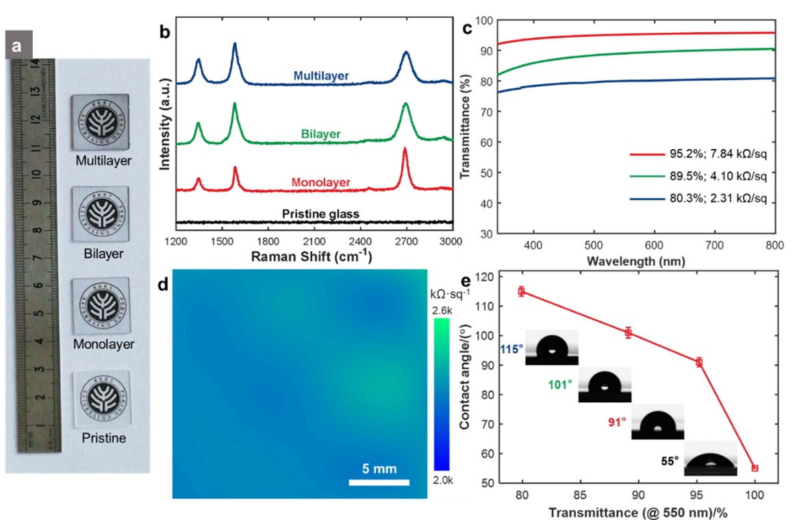 本项目目前仍处于实验室研究阶段。可在石英玻璃、蓝宝石衬底、氧化硅等绝缘衬底上制备单层高质量石墨烯。并且团队利用石墨烯玻璃的导电导热性质将其成功应用于电致变色玻璃等器件,未来可以应用于电致变色窗户、防雾玻璃以及生物培养皿等研究中。这种制备石墨烯玻璃的方法相比于通过液相涂膜或转移方法制备的石墨烯玻璃,大幅度地提高了生产石墨烯玻璃的质量,并且石墨烯与玻璃之间接触紧密,相互作用力强,界面清洁,具有很好的稳定性,保证了石墨烯玻璃的优异性能,进一步有利于促进石墨烯玻璃产业化的发展。