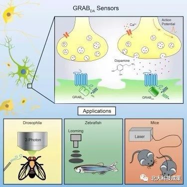本项目可实现对多种神经递质灵敏地动态检测,研究成果可广泛拓展于所有基于G蛋白偶联受体传递信号的神经递质或调质的荧光探针的开发,可进一步应用于在体复杂的神经系统中(如果蝇、斑马鱼及小鼠等),精确地解析不同行为条件下特定神经递质的时空分布以及动态变化。通过与光遗传学或化学遗传学等手段结合,可实现对于特定神经元的功能干预和神经递质信号检测,从而明确阐述特定神经递质和行为功能的逻辑关系。GRAB探针不仅可以实现对生理情况下特定神经递质的实时监测,还可以与特定的疾病模型相结合,监测病理情况下神经递质的变化,为疾病治疗提供指导。同时基于不同GPCR开发的GRAB探针具有受体的特异性,可以用于筛选具有更高特异性靶标的新药,为新药的研发提供一种更加便捷、低成本且高效的筛选方法。