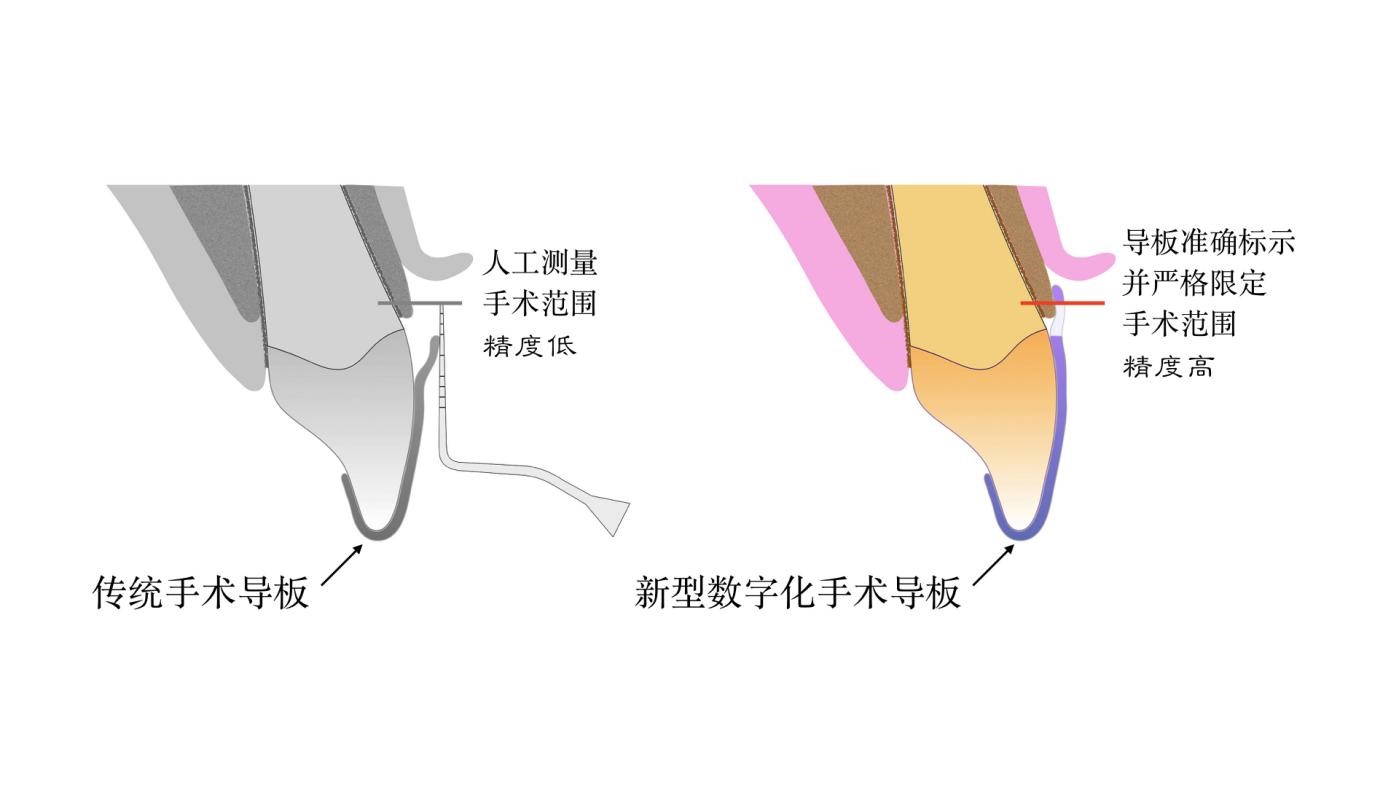 用于口腔医学中的牙冠延长手术。本项目的新型数字化手术导板可以取代传统的导板技术,大幅减少人为误差,显著提升手术效果,尤其适用于美学风险高的复杂病例。牙冠延长手术是口腔门诊的常规手术之一,占全部牙周手术的10%左右,医疗需求很大,且患者对疗效的要求越来越高。采用本技术路径辅助进行手术,可以提高手术效率和手术精度,降低医疗纠纷和法律风险。
