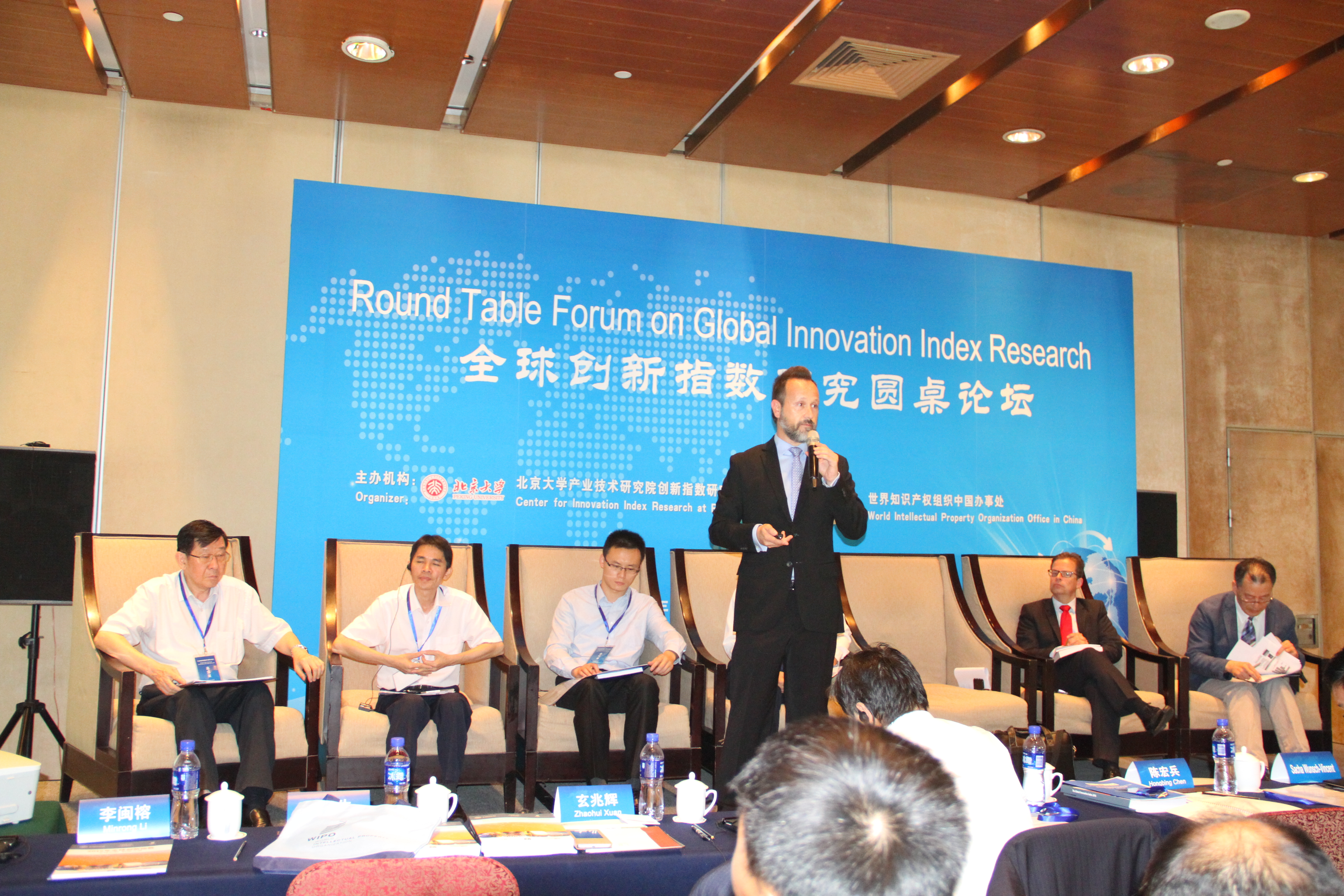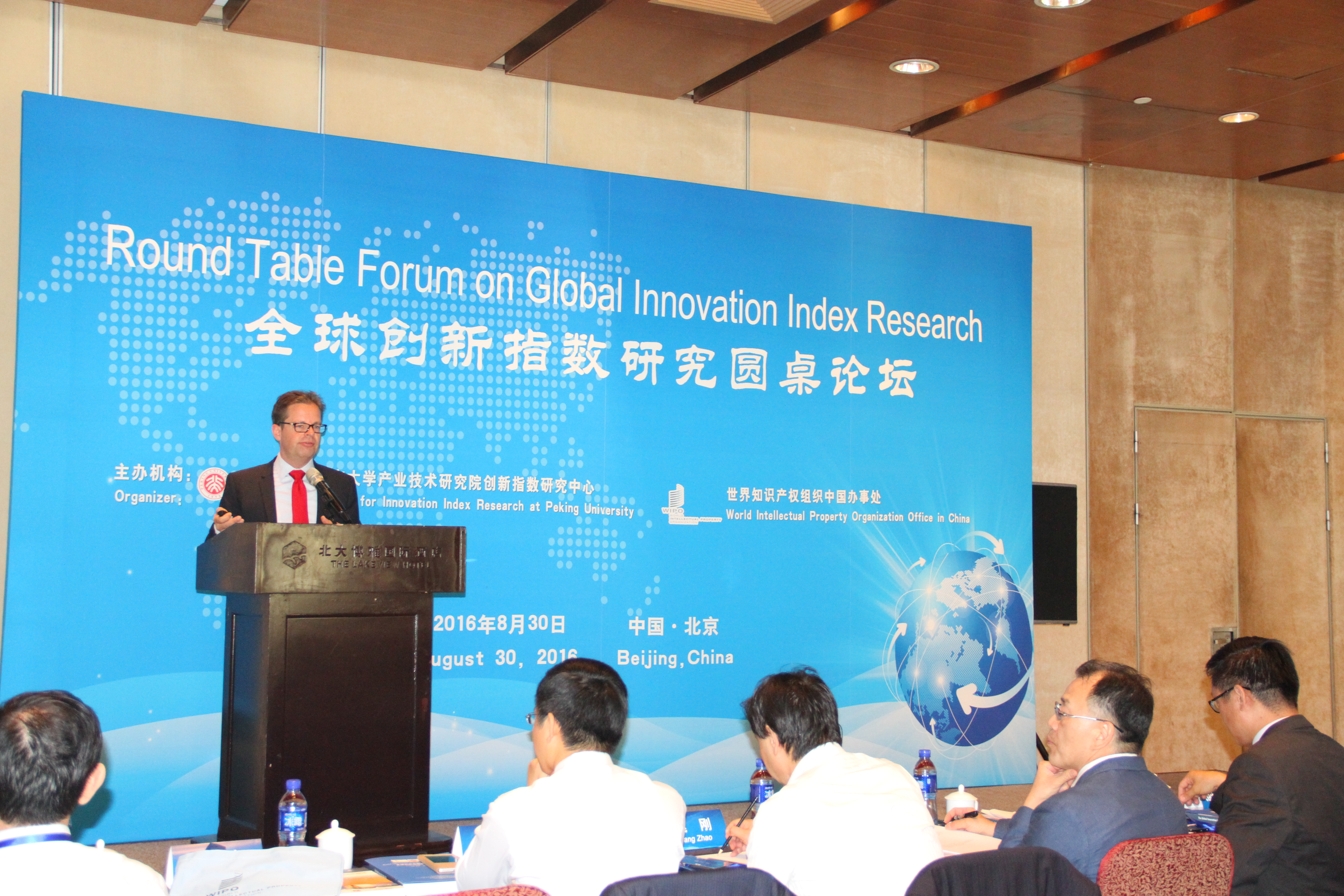 北京大学产业技术研究院创新指数研究中心,世界知识产权组织中国办事处2016年8月30日在北京大学联合举办“全球创新指数研究论坛”,邀请联合国世界知识产权组织2016年全球创新指数报告(GII)的共同主编以及中国《国家创新指数报告》、《首都科技创新发展指数报告》和《G20国家创新竞争力报告》的主要研究专家,共同研讨创新能力的量化,创新指标体系的设计,指标体系框架构建和指数编制方法以及如何正确解读指数的意义,该论坛由北京大学产业技术研究院 创新指数研究中心主任,世界知识产权组织全球创新指数报告中国专家陈东敏教授主持。
