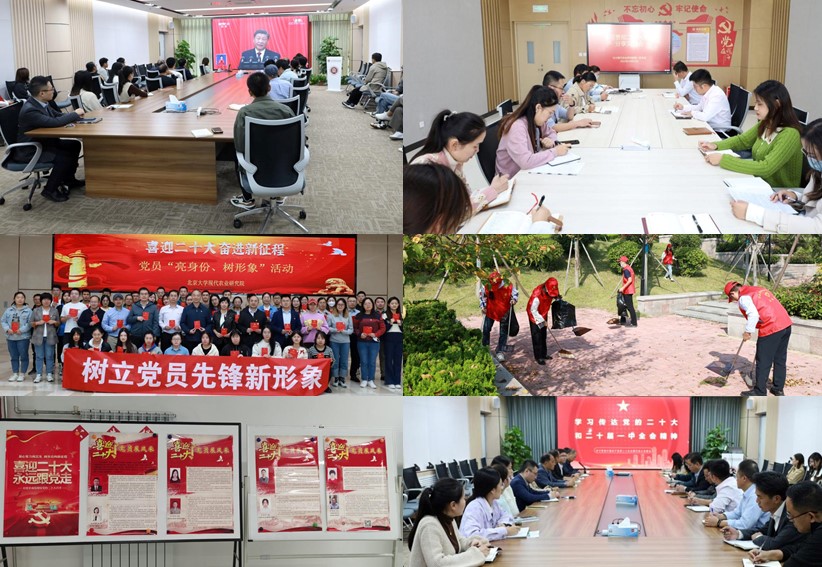 10月25日,北京大学现代农业研究院第一党支部召开学习贯彻二十大精神分享交流会;10月26日,研究院组织党员收看以《全面深刻理解二十大精神努力建功新时代》为主题的二十大报告宣讲;10月27日,研究院召开传达学习党的二十大和二十届一中全会精神会议。此外,党群工作部制作了党的二十大报告学习材料PPT,号召大家会后加强自学。同时结合工作组织了形式多样的活动,如开展“争当干事创业先行者,立足岗位做贡献”、党员“亮身份、树形象”、党支部组织开展一次“分享初心故事”、组织志愿服务等活动。